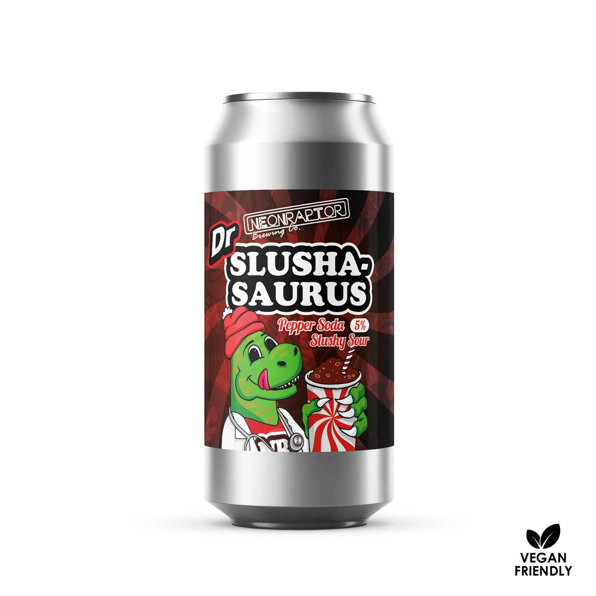 Dr Slushasaurus Pepper Soda - Slushy Sour - Welcome back to Slushassic Park, our usual blend of sweet, sour, and silly, returns, this time in PhD form. Fruity, delicious and misunderstood. Trust me, I'm a raptor.